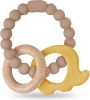 Prírodná úľava pri prerezávaní zúbkov a rozvoj zmyslov v jednom produkte. Textúrované hryzátko kombinuje mäkký silikón potravinárskej kvality s prírodným bukovým drevom, poskytuje upokojujúcu masáž ďasien a bezpečnú hru na precvičenie úchopu a koordinácie.