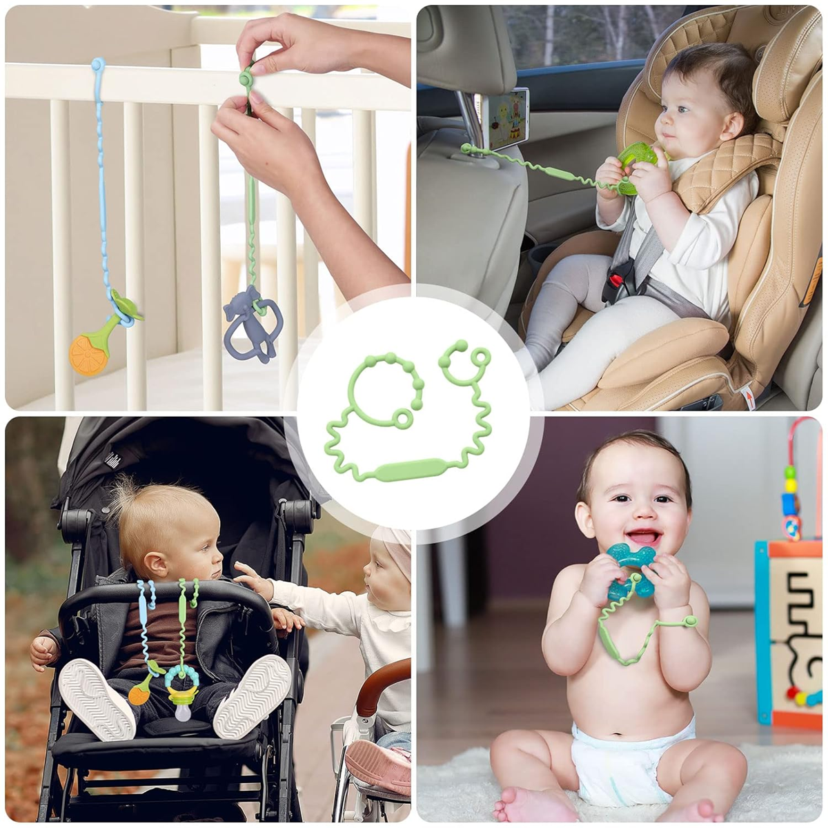 - Retiazku je možné nainštalovať na kočík, v aute, na jedálenskú stoličku alebo na detské zápästie.