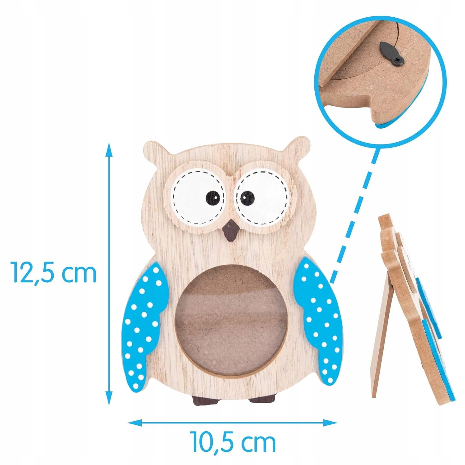 - Súčasťou balenia sú 3 drevené prvky - krabička na zúbok, pokladnička a sova s otvorom na fotografiu.